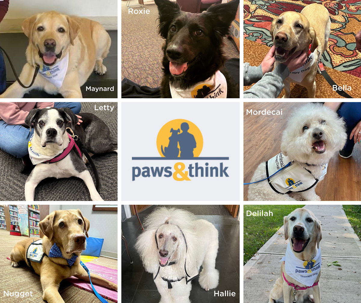 This year, we said goodbye to some very special members of the Paws & Think family: Maynard, Delilah, Mordecai, Letty, Bella, Hallie, Nugget, and Roxie. Each of these therapy dogs brought comfort, love, and healing to countless children, teens, families, and seniors through our programs. Their presence made a lasting impact, and we want to honor their incredible legacy.